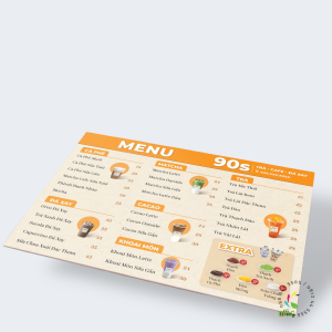 Menu chính đặt tại quầy thu ngân hoặc bàn order.