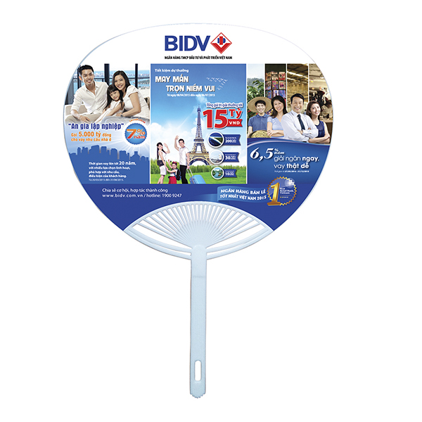 Khác với tờ rơi hay banner chỉ lướt qua, quạt nhựa được sử dụng thường xuyên, dễ lan truyền hình ảnh ngân hàng đến tay khách hàng tiềm năng.